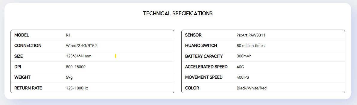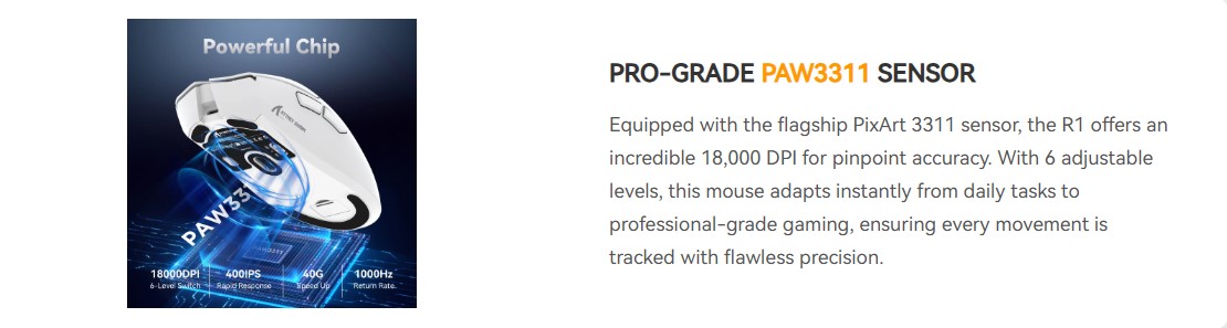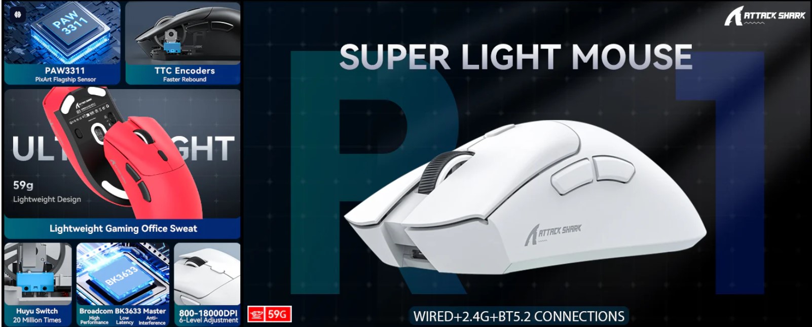 59g SUPERLIGHT Mouse, PixArt PAW3311 Gaming Sensor, Bluetooth/2.4G Wireless/Wired