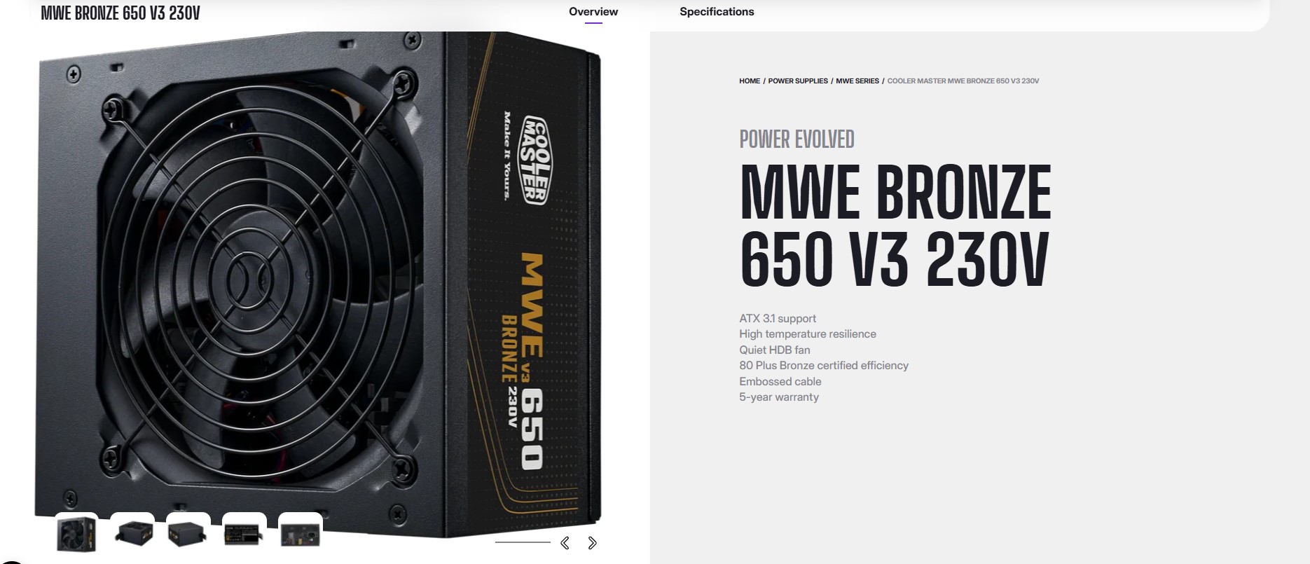 Be the first to review “COOLERMASTER MWE Bronze 650W V3 230V” Cancel reply