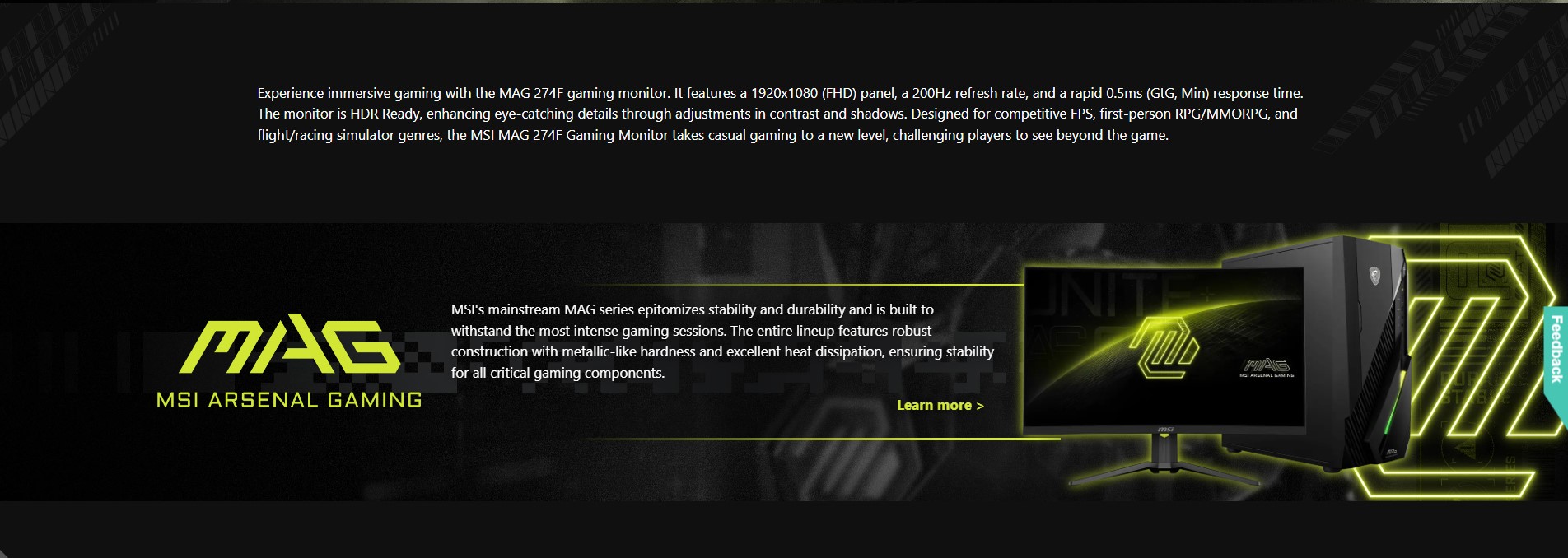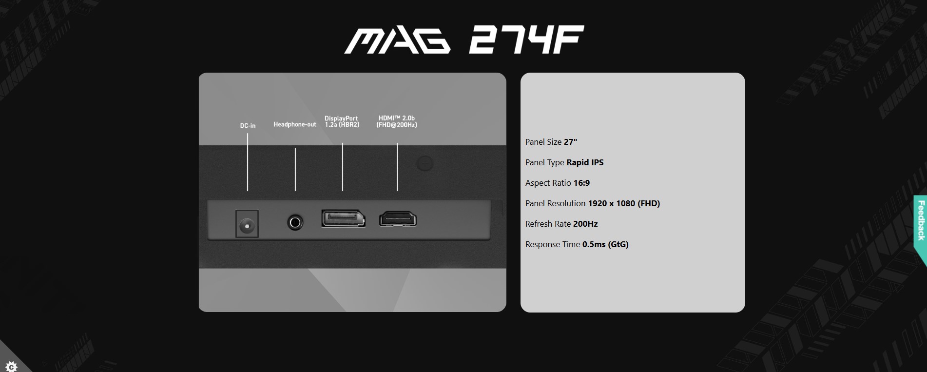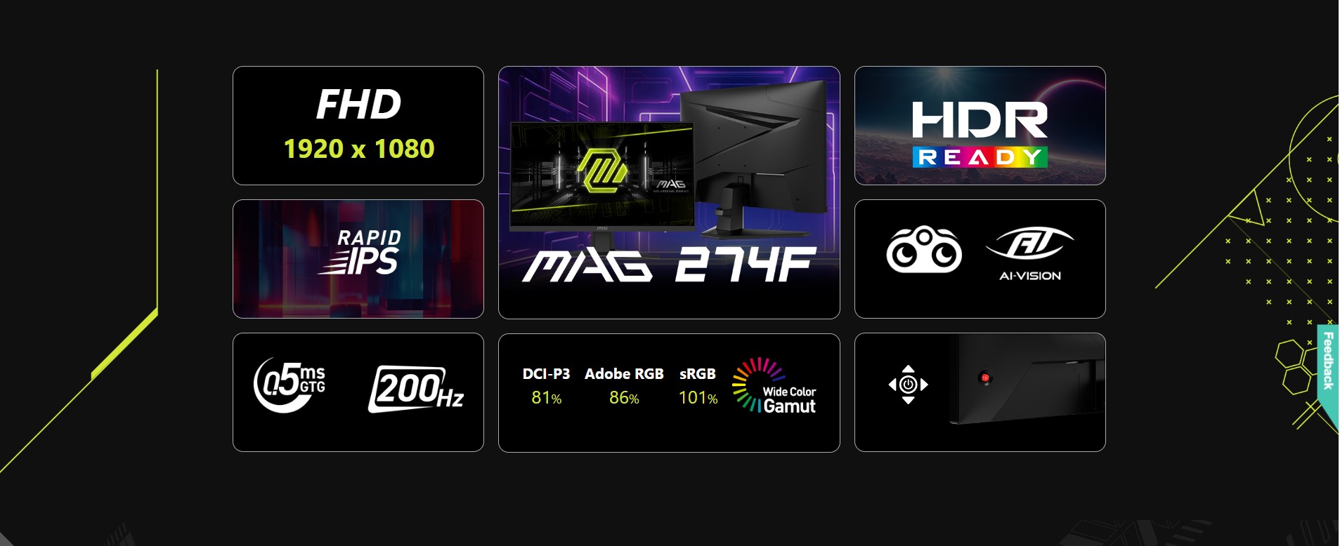 MSI MAG 274F 27”/ Rapid IPS / 200Hz / 0.5ms / HDR / FHD / AI-V