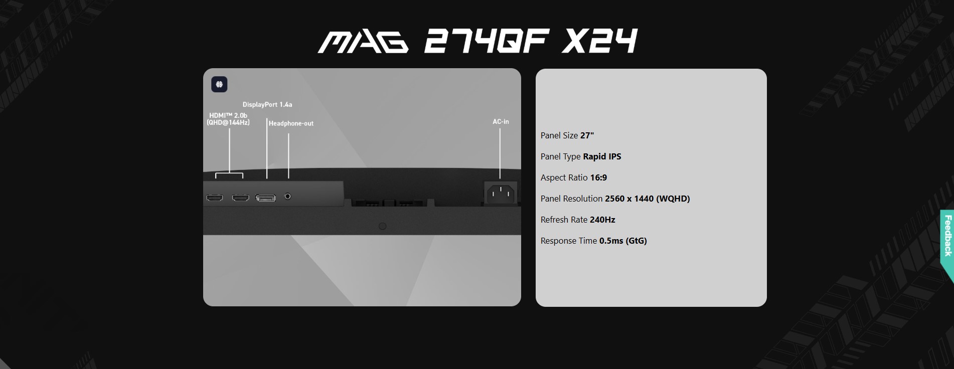 MSI MAG 274QF X24 27”/ 2K/ Rapid IPS / 240Hz / 0.5ms / HDR /WQHD