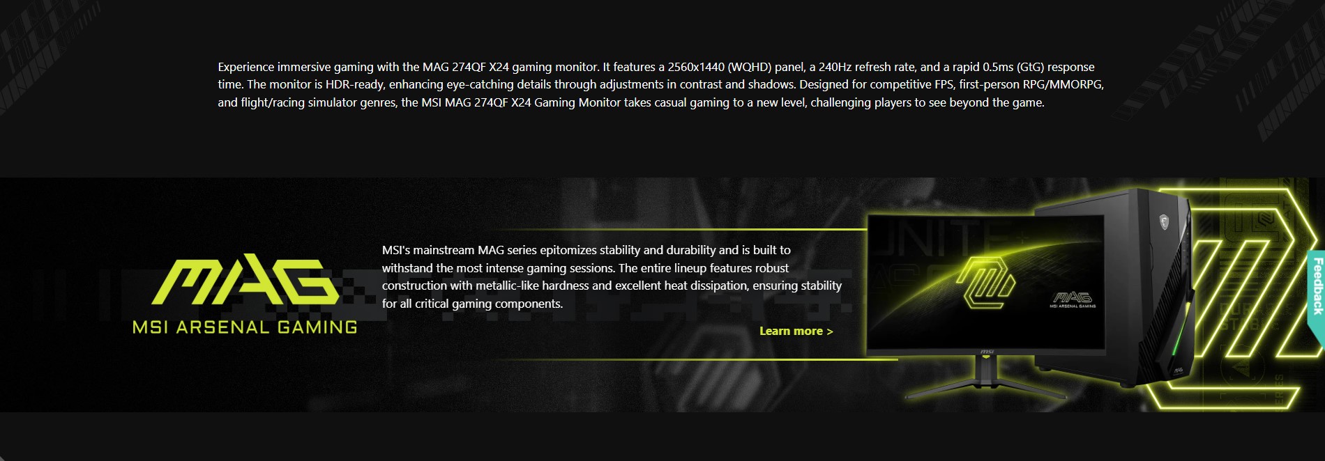 MSI MAG 274QF X24 27”/ 2K/ Rapid IPS / 240Hz / 0.5ms / HDR /WQHD