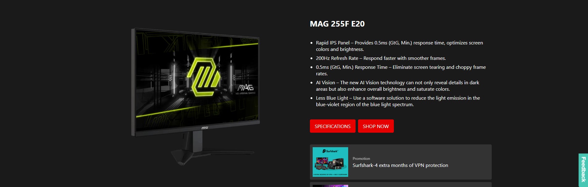 https://www.msi.com/Monitor/MAG-255F-E20/Specification