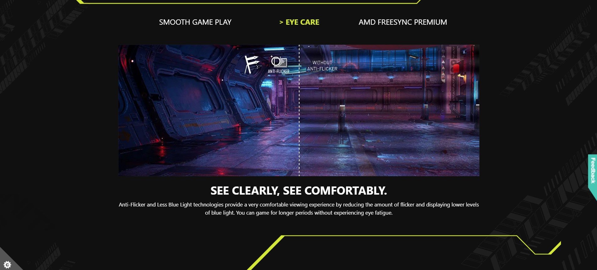 - 0.5ms (GtG, Min.) Response Time – Eliminate screen tearing and choppy frame rates.