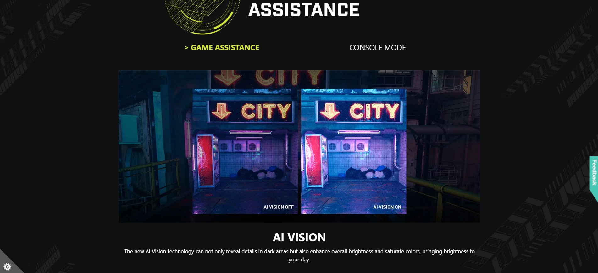 - AI Vision – The new AI Vision technology can not only reveal details in dark areas but also enhance overall brightness and saturate colors.